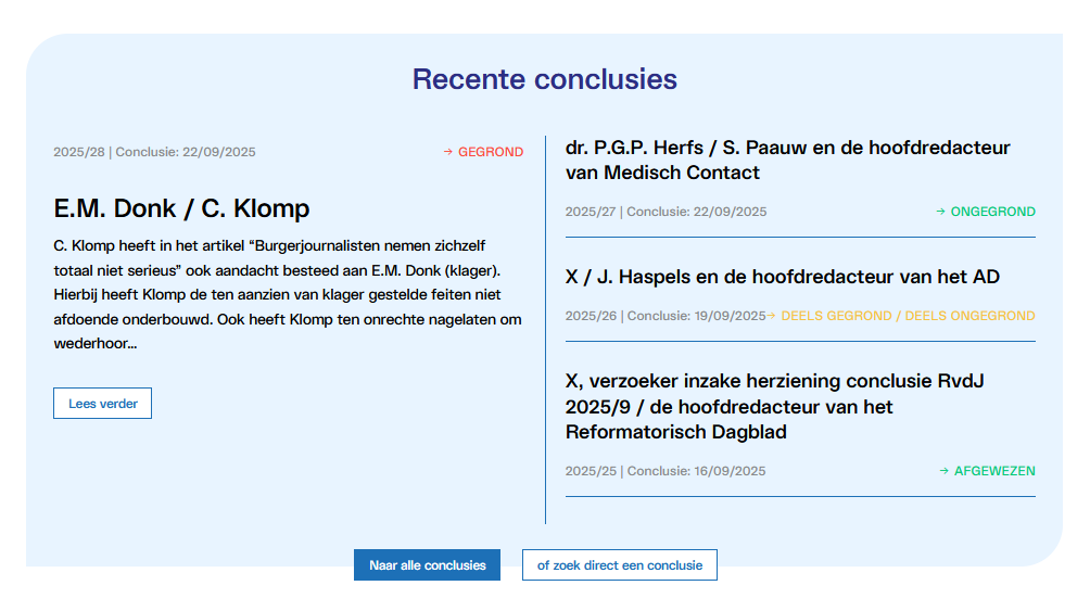 De Raad doet de aanbeveling aan Klomp om deze conclusie integraal of in samenvatting te publiceren.